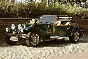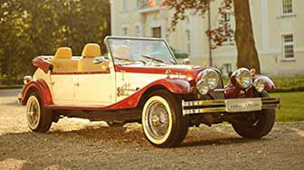 Alfa Romeo Majestic jest 4-osobowym kabrioletem będącym repliką popularnej Alfy Romeo 6C 1750 z 1929r. Wynajmujemy go wraz z obsługą kierowcy. Auto zostało stworzone w 2006 roku i jest wyposażone w 4-cylinrowy silnik pojemności 1600ccm i mocy 80 KM. Kolor nadwozia to bordowy metalic/biały, a kolor dachu: bordowy. Ponadczasowy styl.
